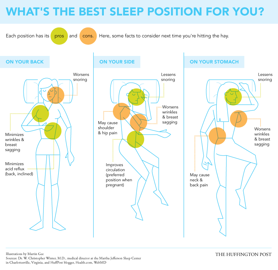 Gracias a esta explicativa imagen de Martin Gee, y extraída del HuffingtonPost, podemos explicar tanto a nivel visual como escrito cuales son los pros y contras de las diferentes y más comunmente utilizadas posturas para dormir: